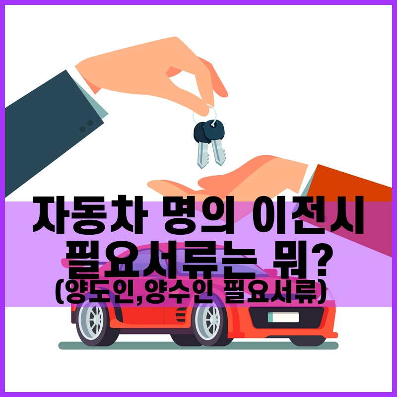 차를 사는 사람(은 양수인)이 준비할 서류, 차를 파는 사람(은 양도인)이 준비할 서류가 있습니다. 개인, 개인사업자, 법인사업자, 장애인, 외국에 따라 준비해야 될 서류가 다르기 때문에 꼭! 꼭! 확인 후 자동차 명의 이전 절차를 진행하기시 바랍니다.
