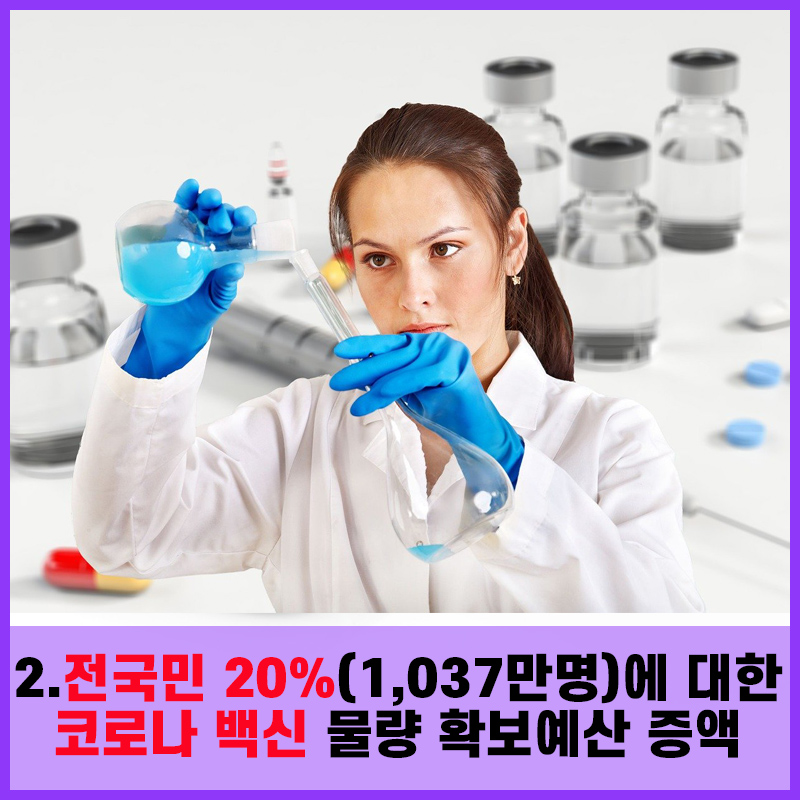 전 국민 20%(1037만 명) 대상 코로나 백신 물량 확보 예산 1839억 원을 증액했습니다.