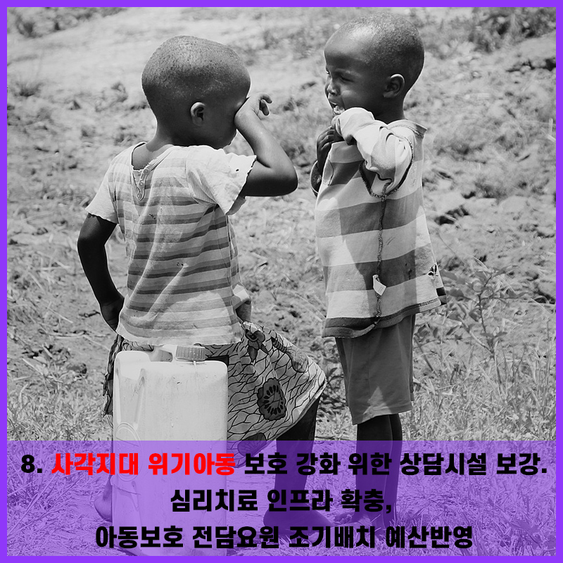 이에 최근 논란이 된 사각지대 위기 아동 보호 강화를 위한 상담시설 등을 보강하기 위한 예산이 반영된다고 했다. 코로나19가 발발하면서 사각지대에 놓인 아이들을 크게 신경 쓰지 못했던 거 같습니다. 이번 기회를 통해 이런 아동들이 보호되었으면 합니다.