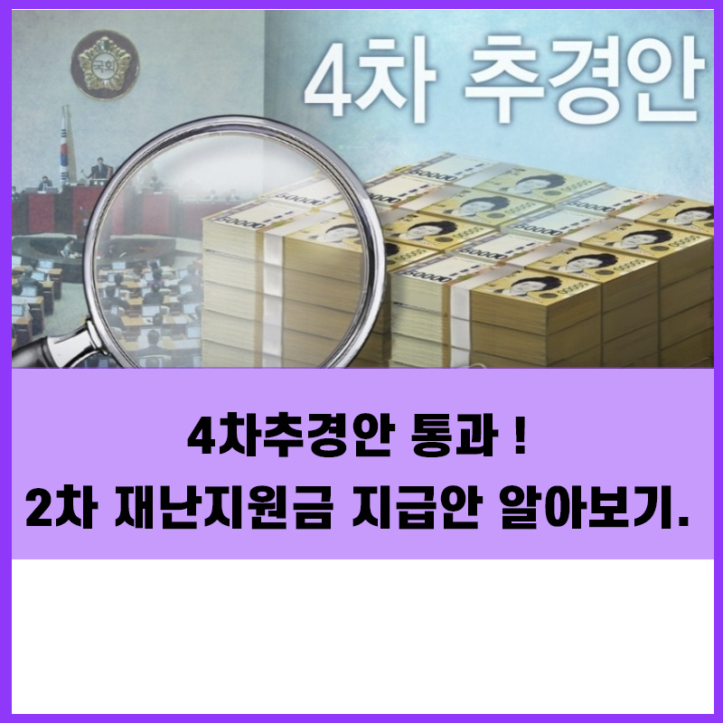 오늘 코로나 재확산으로 피해를 본 계층을 맞춤형으로 지원하는 내용의 7억 8천억 원 규모의 4차 추경안이 국회를 통과했습니다. 이에 추경안에 포함되어있는 2차 재난지원금 지급 대상과 금액에 대한 내용을 알아보도록 하겠습니다.