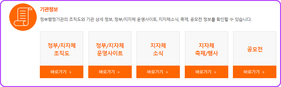 대한민국 중앙행정기관, 공공기관, 지방자치단체 서비스에 대한 안내와 정부24가