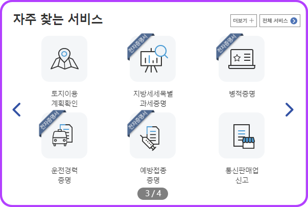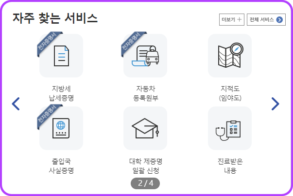 정부 24에서 자주 찾는 서비스 목록 (24가지) |