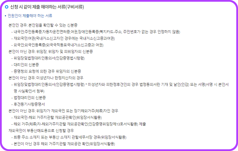• 증명처의 요청에 의한 경우 위임자의 신분증 |