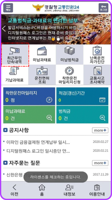 속도위반, 신호위반 무인단속 카메라에 찍혔는지 확인하는 방법은 모바일 또는 PC에서 확인이 가능합니다.