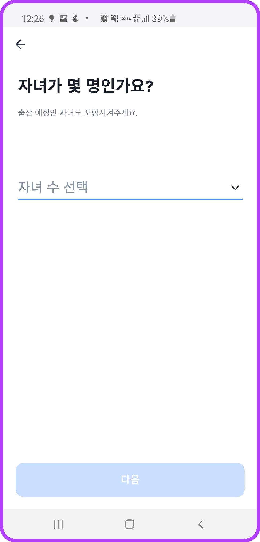 자녀가 있으시면 몇 명인지까지 선택을 합니다.