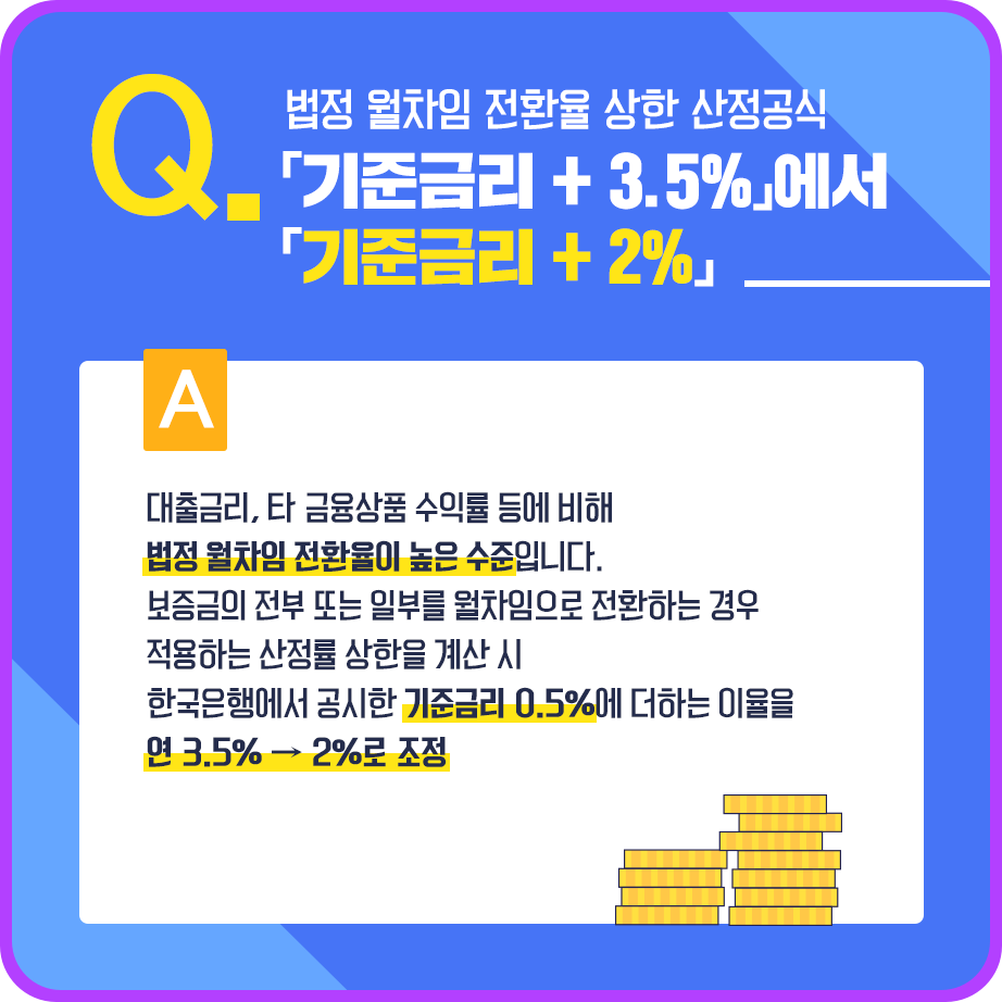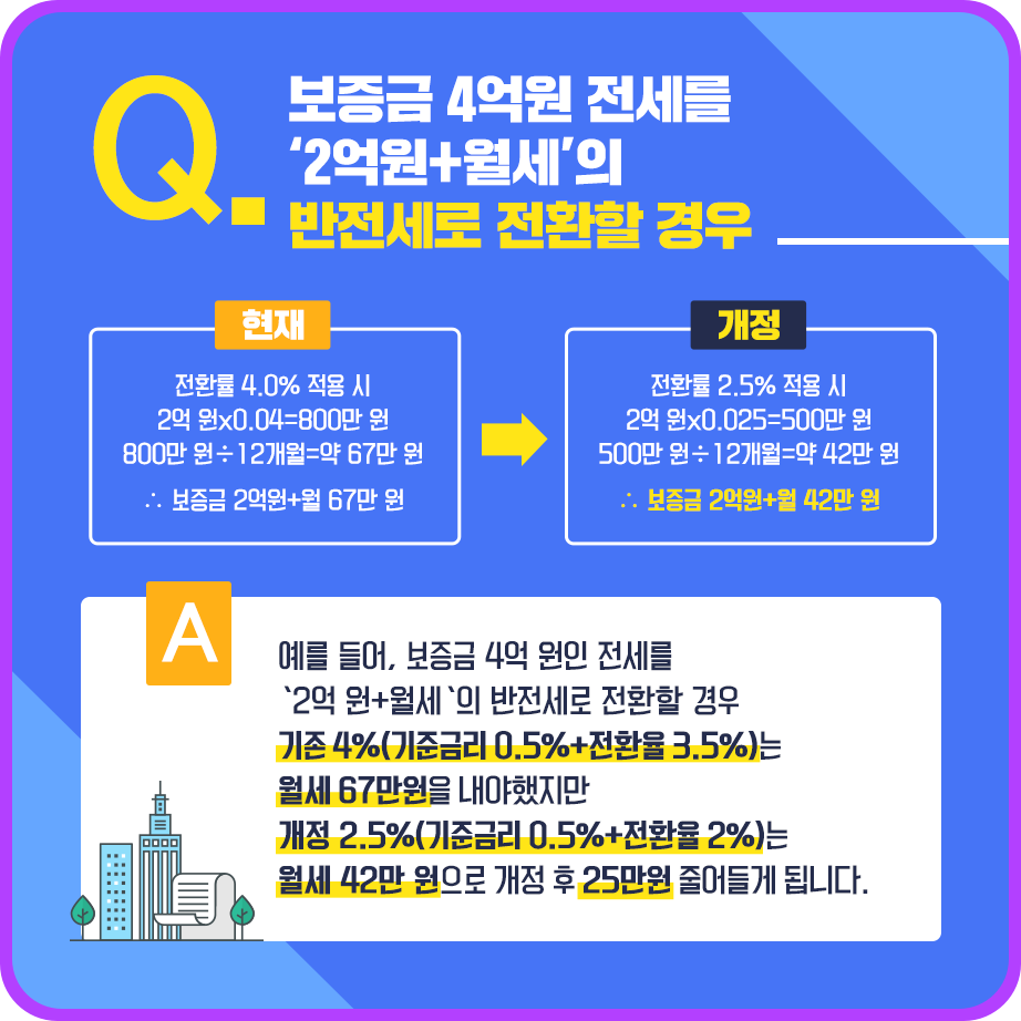 두 번째, 전월세 전환율이 기존 4%에서 2.5%로 변경되었다는 것입니다.