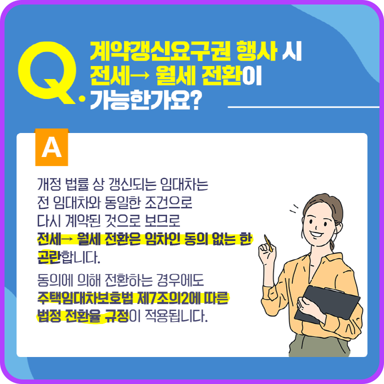 2020년 9월 29일 임대차보호법 개정이 시행되었죠? 그러면서 관심을 가지셔야 할 부분이 전세보증금을 월세로 전환할 때 적용되는 전환율인 전월세 전환율, 기존 4% 에서 현행 2.5%로 변경되었습니다.