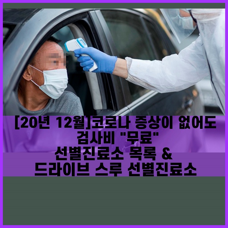 사회적 거리두기 2단계부터는 코로나 의심증상이나 역학적 관련성이 없더라도 누구든 선별진료소에서 무료로 코로나 검사를 받을 수 있게 되었습니다. 서울뿐만 아니라 경기, 인천, 부산, 대전 등 전국적으로 코로나 검사 비용이 무료입니다. 방문시 신분증은 필히 지참 하셔야 합니다. 전국 선별 진료소 명단은 복건복지부 사이트에서 확인이 가능합니다.