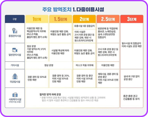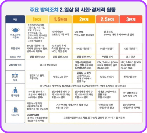 그래서 오늘은 사회적 거리두기 각 단계별로 주요 방역조치에 대해서 알아보도록 하겠습니다.